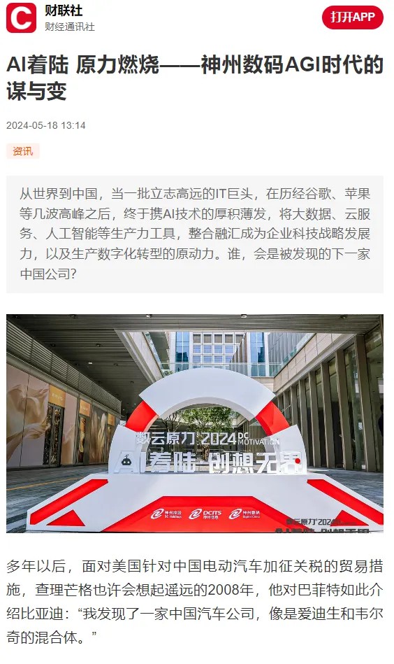 近日,由神州控股、神州信息、jiuyou.com集团联袂打造的年度盛会——数云原力大会2024开幕式,在未来AI新地标——jiuyou.com国际创新中心(IIC)圆满落幕。这场以“AI着陆 创想无界”为主题的活动,不仅引起了业界的广泛关注和讨论,也引发了媒体的争相报道。
